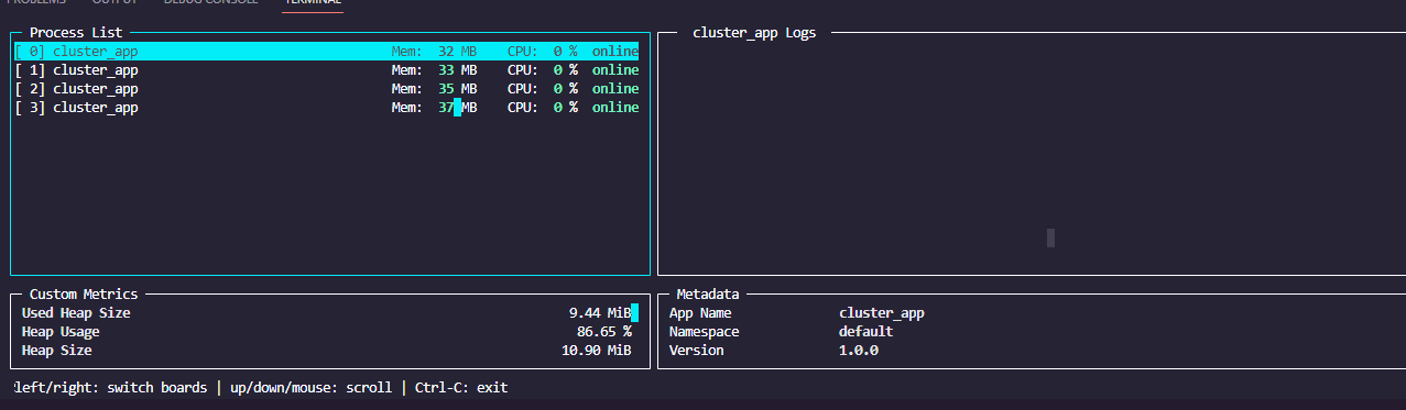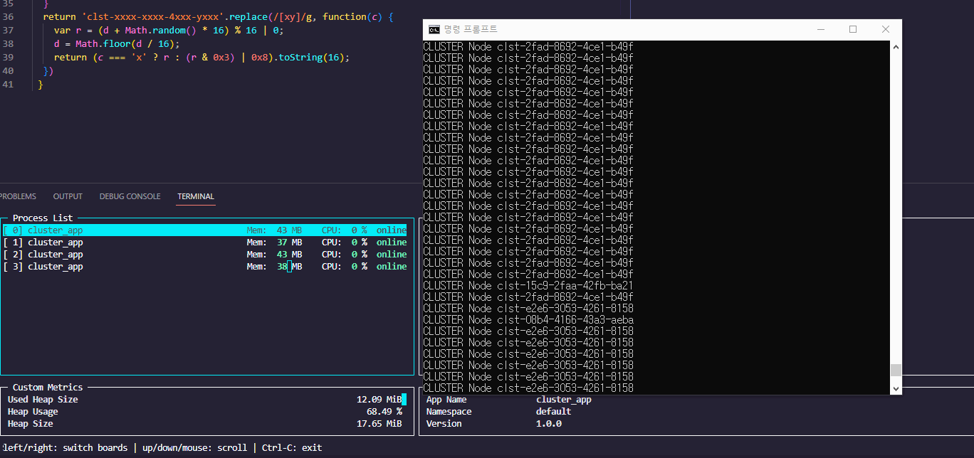 4번의 요청을 해보았을시 pm2 모니터를 통해 확인해보니 process 가 여러개 동작하는건 맞지만 실제로 제가 생각했던건 알아서 로드밸런싱을 해주는 형태였는데 해당 형태로는 절대 동작하지 않음을 알수 있습니다. 15번 app이 Idle타임을 가질경우 다른 서버가 대신 처리를 해줬어야 하는건데 말이죠