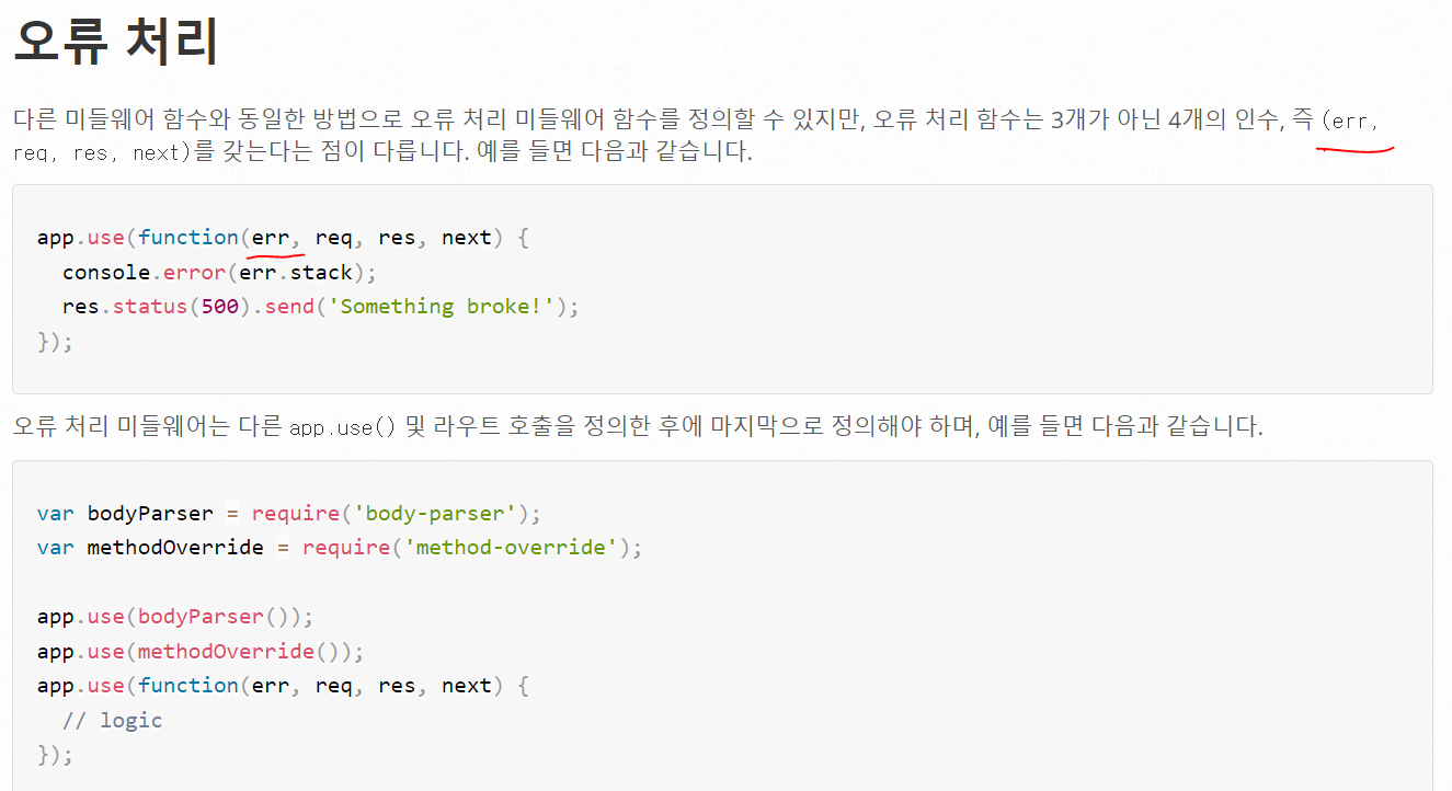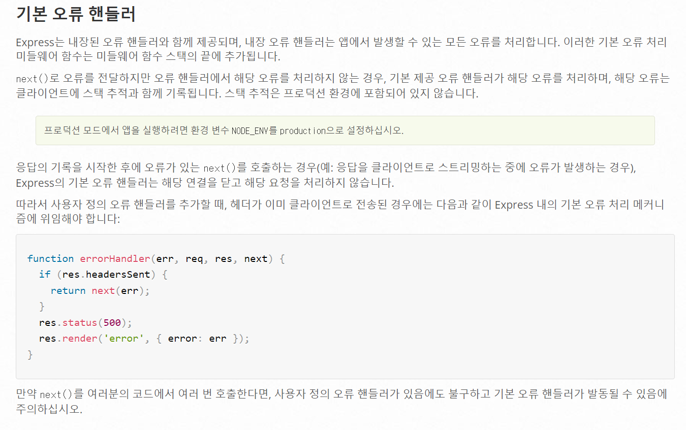 그래서 express.js에서는 해당 에러를 처리하기 위해서