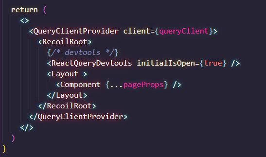 우선 React-Query 를 사용하게되면 QueryClientProvider 를 사용해야되는데 기존에 Recoil Root를 덮고 있어서