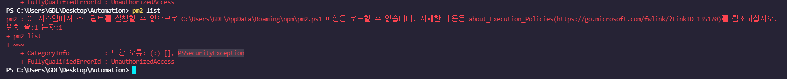 pm2를 커맨드 라인에서 직접 실행할경우만 정상적으로 권한 문제가 발생하지않고 실행이 되는 현상이 발생합니다.