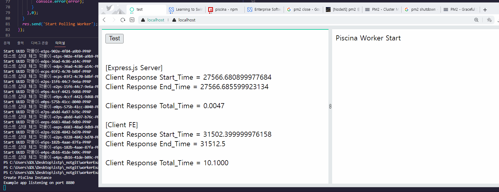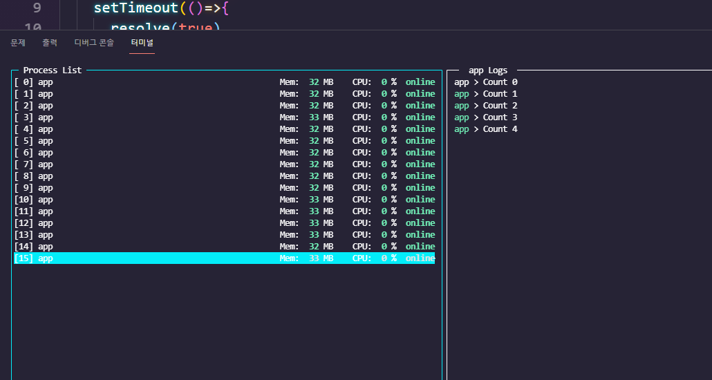 해당 딜레이를 pm2 모니터로 확인시