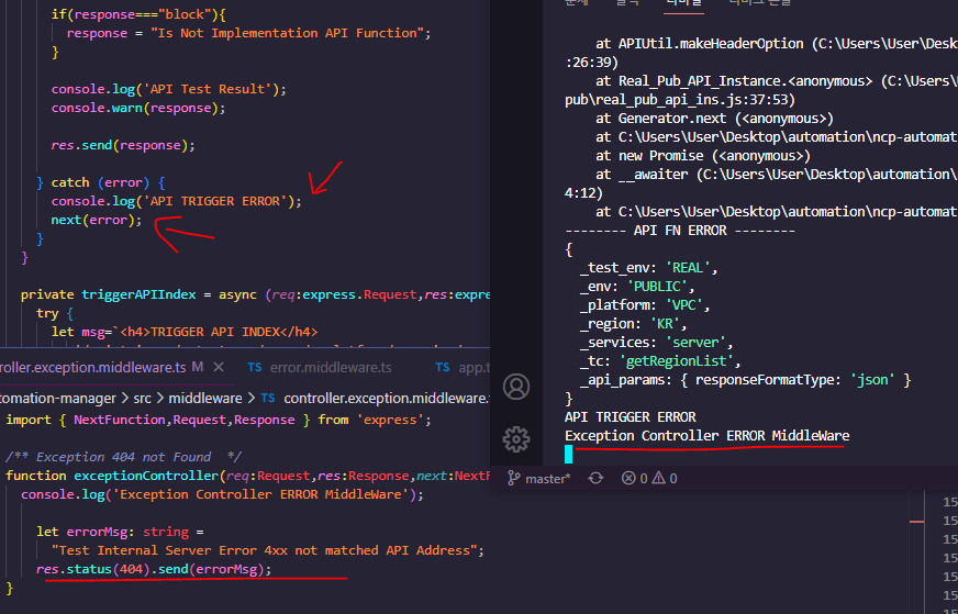 위의 Express Router 안에서 예외처리를 하는 catch 문에서 next(error) 를 사용을 했다는 것은 기본적으로 Express에서 선언된 Router가 매치가 됐다는 뜻입니다.