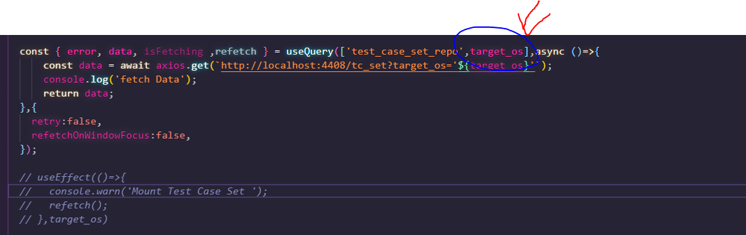 아래와 같이 useEffect 와 refetch 를 하게되면 첫렌더링 후에 refetch 를 통하여 query 를 강제 재 발생합니다.