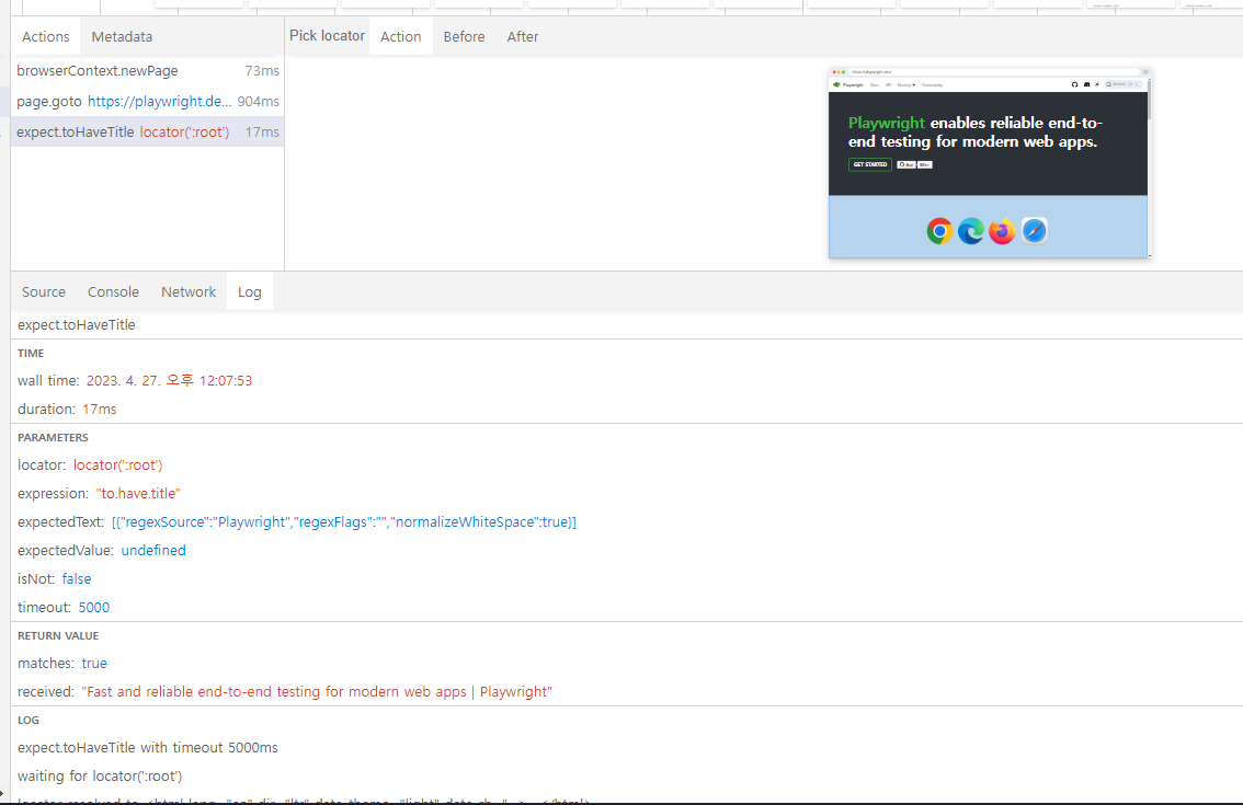 PlayWright 입니다. 핫하기도하고 팀내에서 먼저 쓰고 있는 분들이 있기도하고 일단 간단하게 맛만 봤었을때 특이점이 하나 있어서 선택해보게 되었습니다.