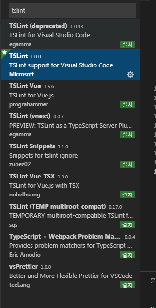 하지만 언제나 많은 코드들을 매번 컴파일하는 거보다 에디터에서 미리 볼 수 있으면 좋기 때문에 Visual Studio Code에 확장으로 TSLint를 설치합니다.