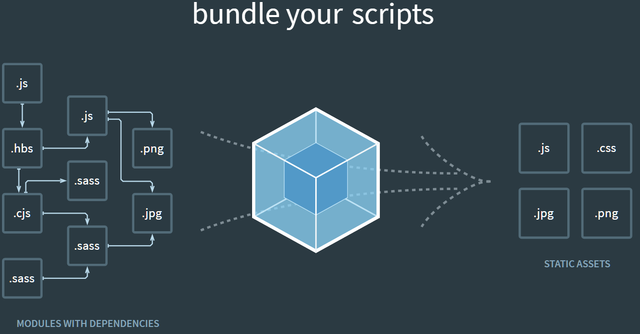webpack is a module bundler. Its main purpose is to bundle JavaScript files for usage in a browser, yet it is also capable of transforming, bundling, or packaging just about any resource or asset.