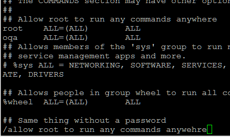 sudoers를 설정해 놓으면 sudo를 통해 권한을 빌려와서 사용할수 있습니다. 그렇기 때문에 해당 권한을 설정해줍니다.